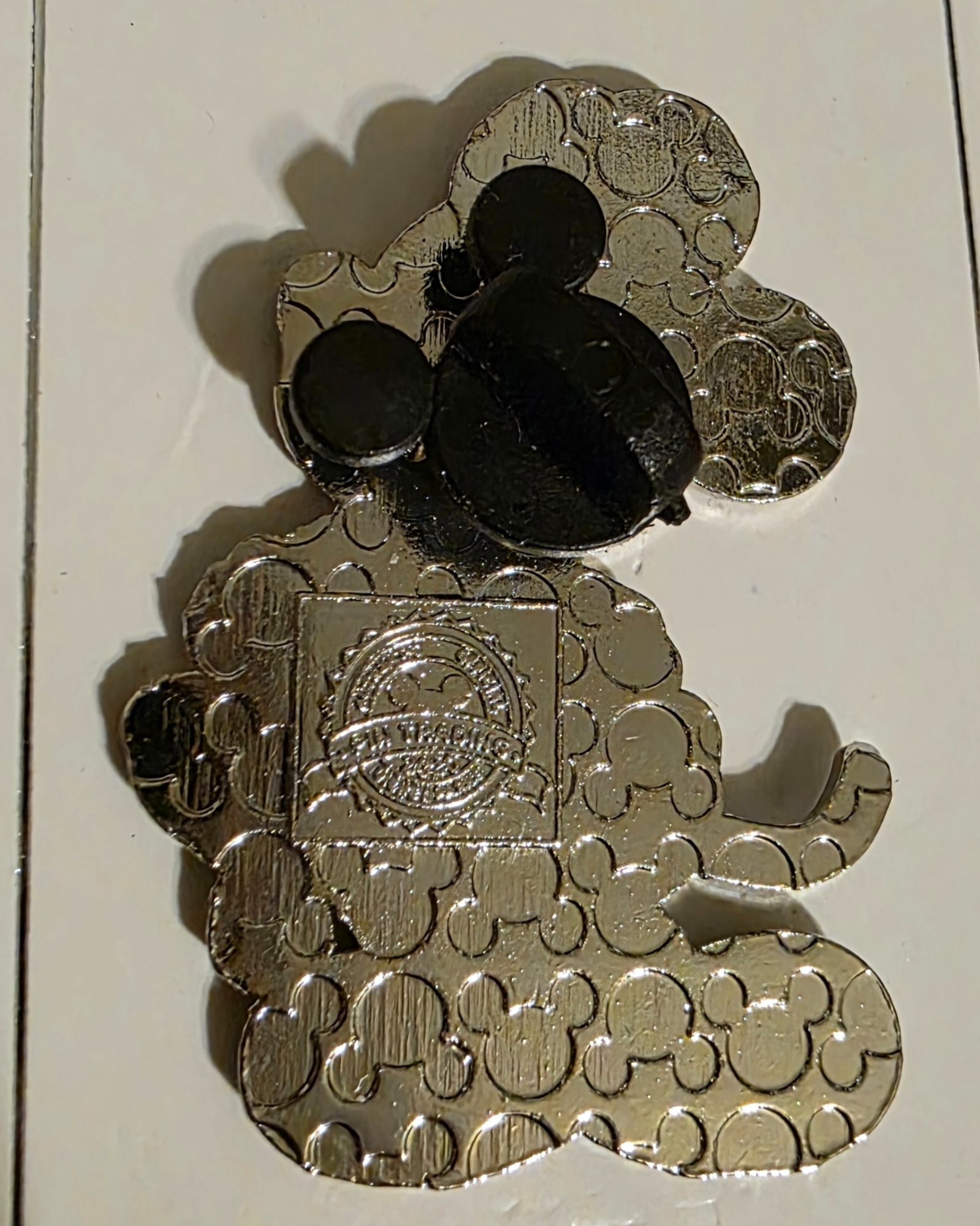 This 2006 release looks almost identical but there's nothing in the description about what the back says. It does say not glittery and white mouth, which sounds like your pin? I'm not 100% sure though, especially because this pin should be LE 300 and yours isn't backstamped LE either?