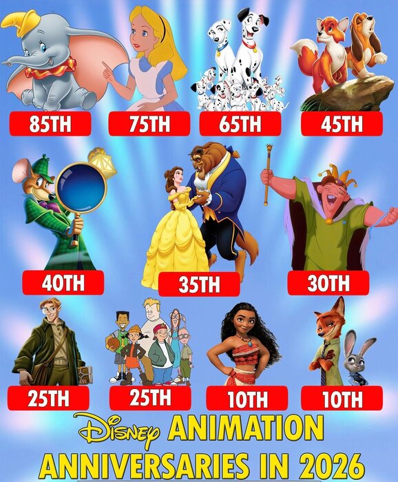 DISNEY MOVIE ANNIVERSARIES FOR 2026