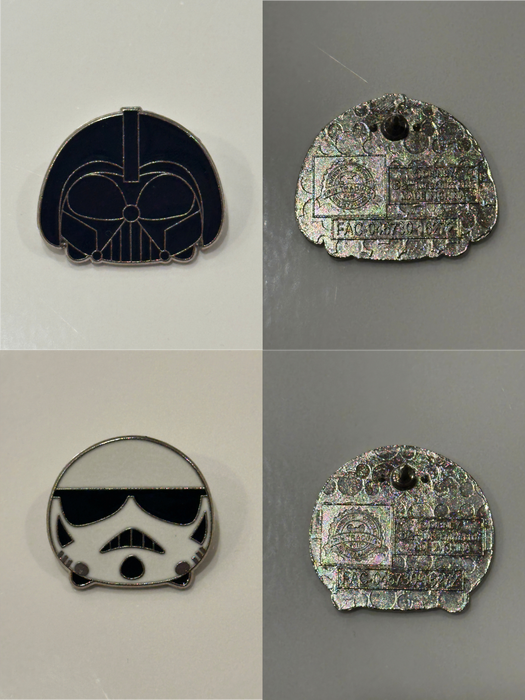 Apologies for the quality of some of the photo... I did my best, but I’m happy to provide additional pictures if needed. I’m reviewing my old Star Wars Tsum Tsum collection and realize that only some of these pins may be authentic. I’d appreciate help in determining which pins are real versus fake. I have not been able to identify any consistent indicators that would make me confident labeling any of them as real or fake. I understand that quality control varied significantly, which makes it difficult to determine authenticity.