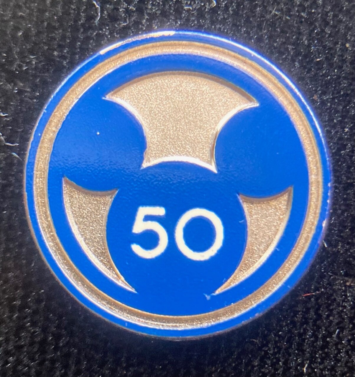 Info on a .75 inch Silver pin blue Mickey head with 50 inside the head