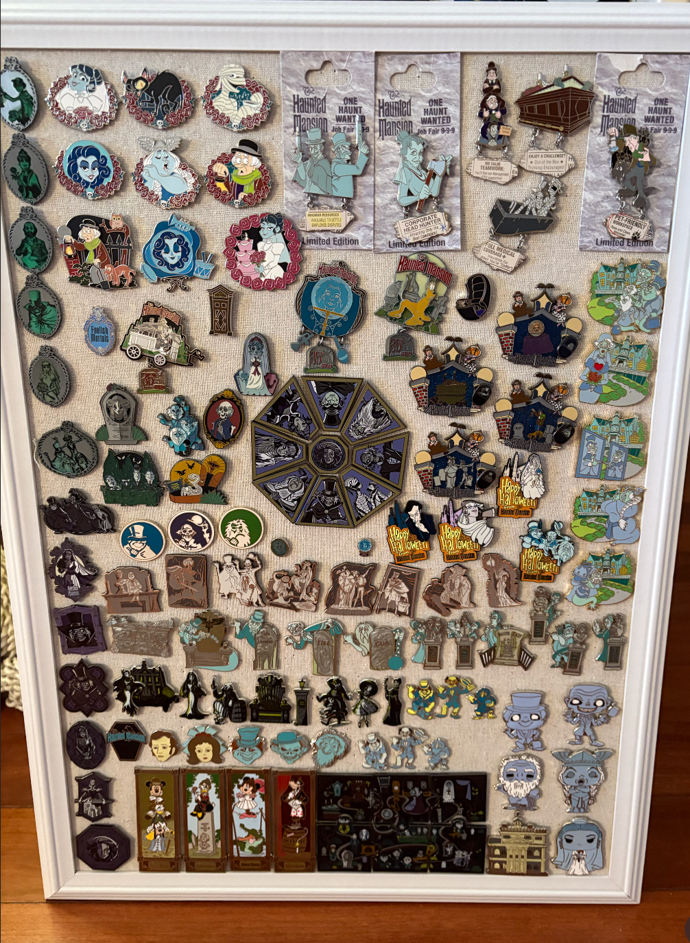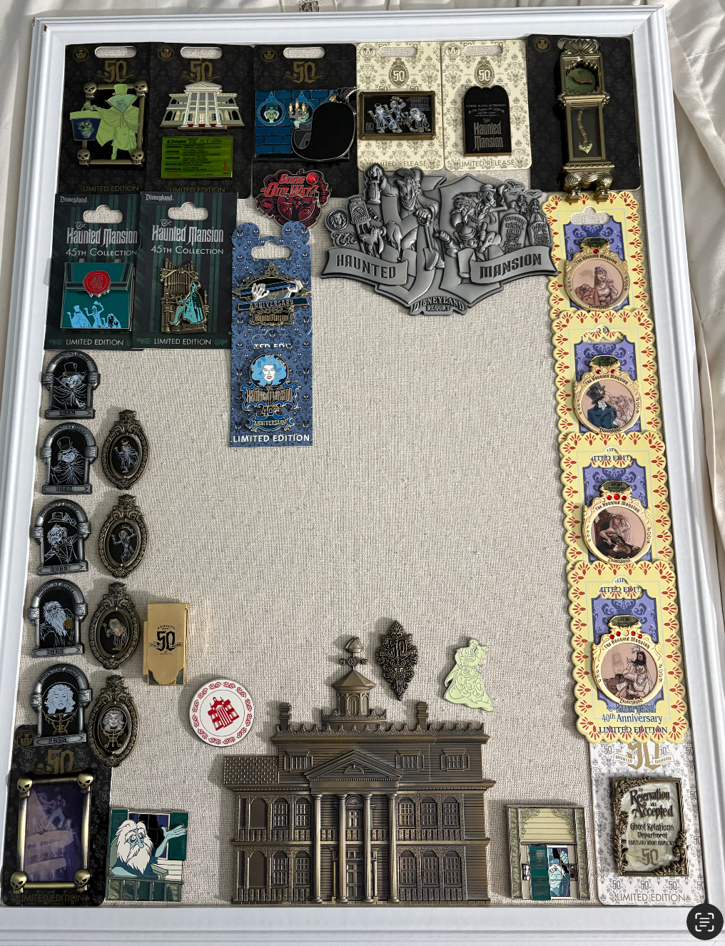 Hi!! I am so excited to share my pride and joy. There are more pins not pictured that are either in boxed sets or not on my boards. I guess my goal is 999 haunted mansion pins I am obsessed with the O-Pin house pins from the 40th, I think they are gorgeous! I also love the 50th anniversary pins and I am trying to be 50th complete! I want to be o-pin house complete but with those doom buggies being LE 40, seems impossible! I would love to see any other fellow mansion collectors collections! -Lauren IMG_8729.HEIC IMG_9719.HEIC IMG_9720.HEIC IMG_9721.HEIC IMG_9722.HEIC