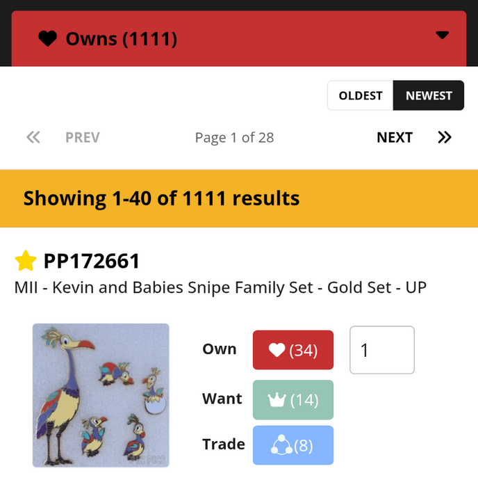 Today I hit 1,111 PinPics listings in my owned pins collection! If it was mileage on a car, I would have had to pull over to take a photo (grew up doing that with fun numbers) so I knew I had to take a screenshot to remember this day. Of course, a fair number of those listings are sets, so the actual number of pins would be very different, still, I found it fun.