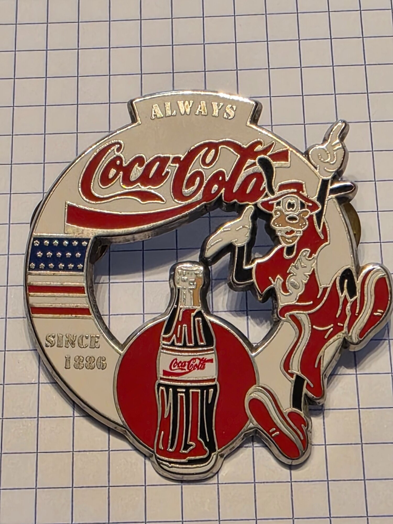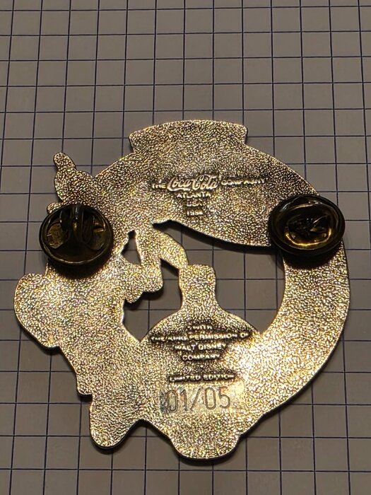 Hi, everybody. I am looking for information regarding this oversized 3D-style pin featuring Goofy in a 90s streetwear outfit (bucket hat and "Coke" t-shirt). Key Features: • Front: Features the "Always Coca-Cola" logo, a contour bottle, and the American flag. Text: "Since 1886". • Backstamp: * "The Coca-Cola Company - Atlanta, USA" • "With permission of Walt Disney Company" • Limited Edition: 01/05 (Engraved) • Backing: Double rubber/clutch back. • Condition: Excellent / Near Mint. Question: Due to the extremely low edition size (Only 5 pieces worldwide), I haven't been able to find this pin in any standard database (PinPics/PinStack). Is this an Executive Gift, a Prototype, or a Special Event trophy from the mid-90s? Any help with its history or estimated value for insurance/sale would be greatly appreciated. -