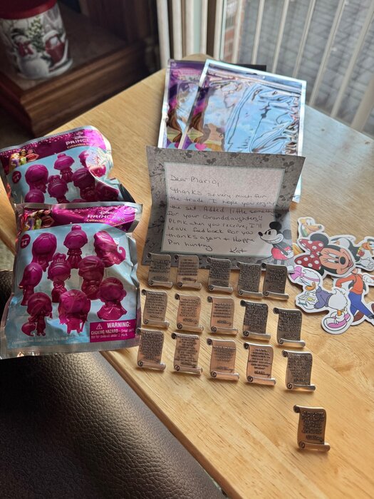 Great trade with @katinthehat28. I was able to get all 15 Walt quote pins plus the CM quote pin. Plus she took the time to polish them up and make them look brand new. Plus she threw in some goodies for my granddaughters. Thanks Katharine!