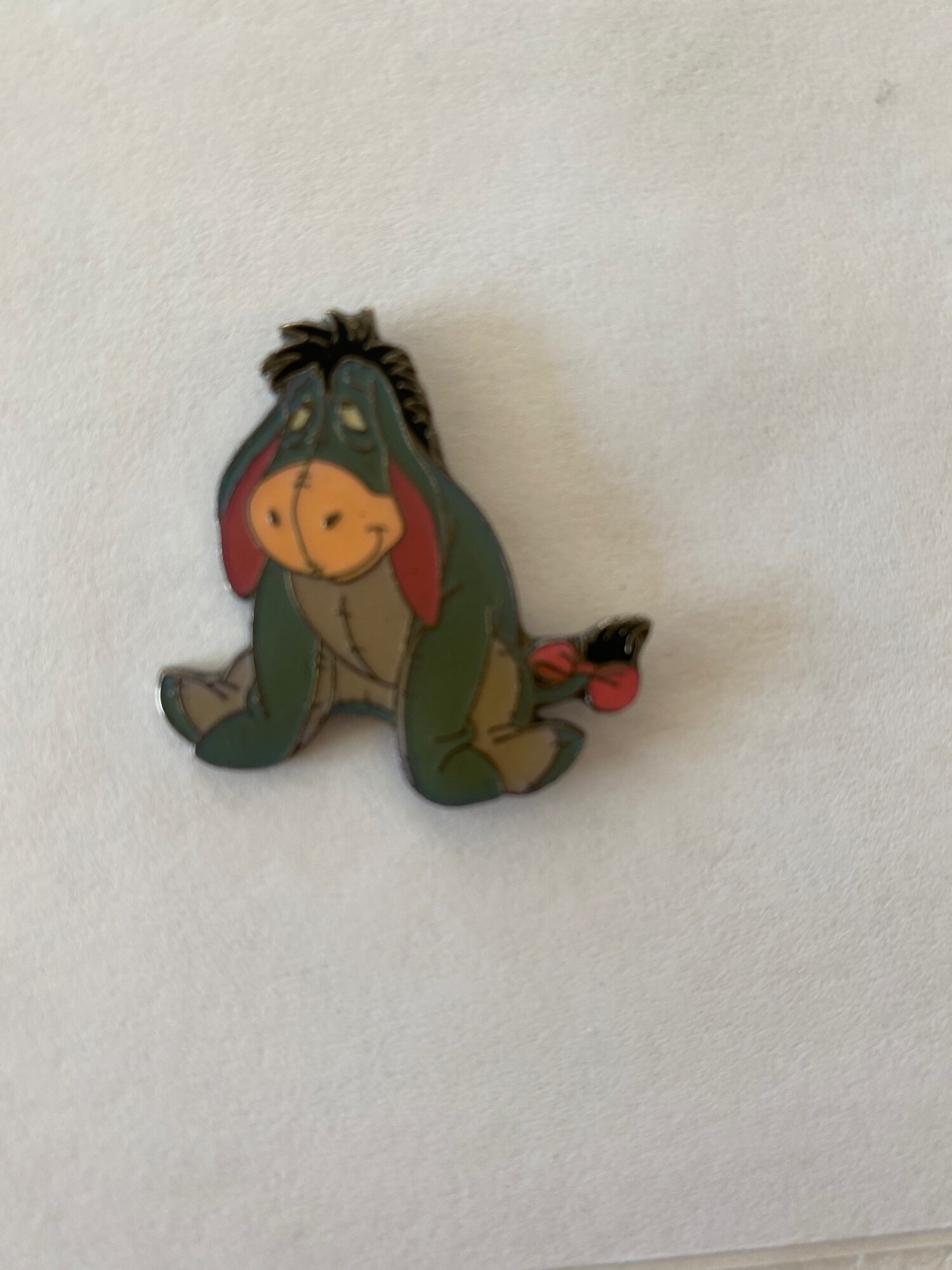 Google says this is “This item is a collectible Eeyore enamel pin from Winnie the Pooh, produced by ProPin in Germany. The pin features a sitting Eeyore with a slight smile “. Here are the pics. Thank you for your help I’m afraid I don’t know what that means