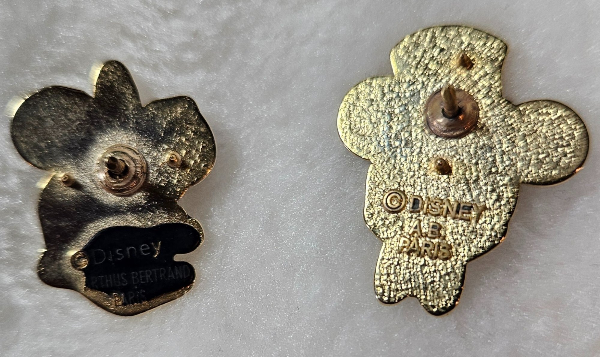 armybeans Posted September 27 Posted September 27 So I have had these pins for over 20 years and just found them again. I am trying to figure out why the back of the Minnie pin is different then the Mickey? The Minnie seems to have some kind of black substance fused to the back with the artists name while the Mickey say AB Paris. I don't think it was an accident or misprint, so can only think it was intentional. Does this make the pin worth more or less? Any help would be greatly appreciated. Quote